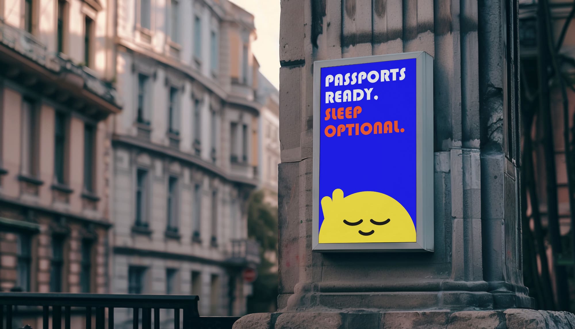 The rounded, bold typeface supports the approachable tone of the brand, while vibrant colors and lighthearted illustrations bring humor and energy to the identity. The system was extended across posters, social media, animations, and promotional materials, creating a cohesive and memorable visual language that captures the spirit of effortless travel.