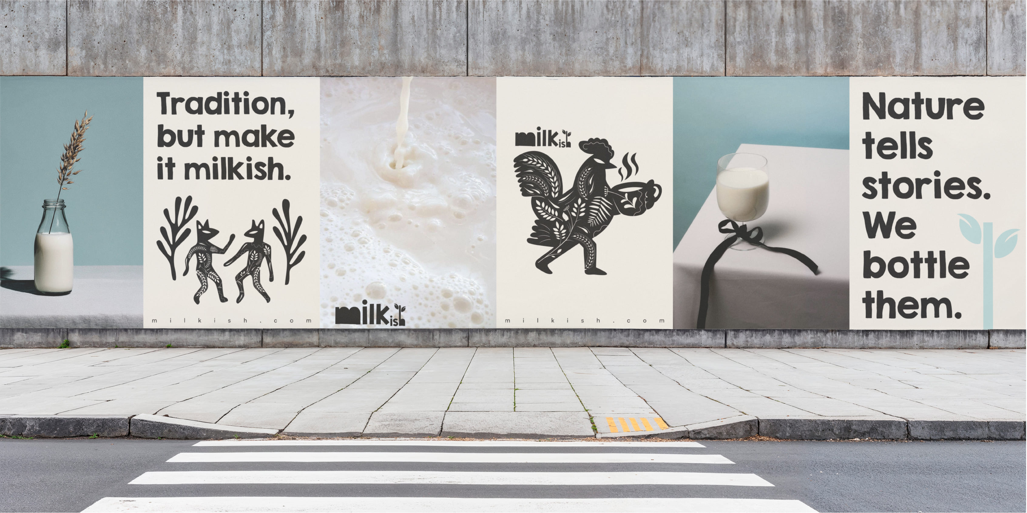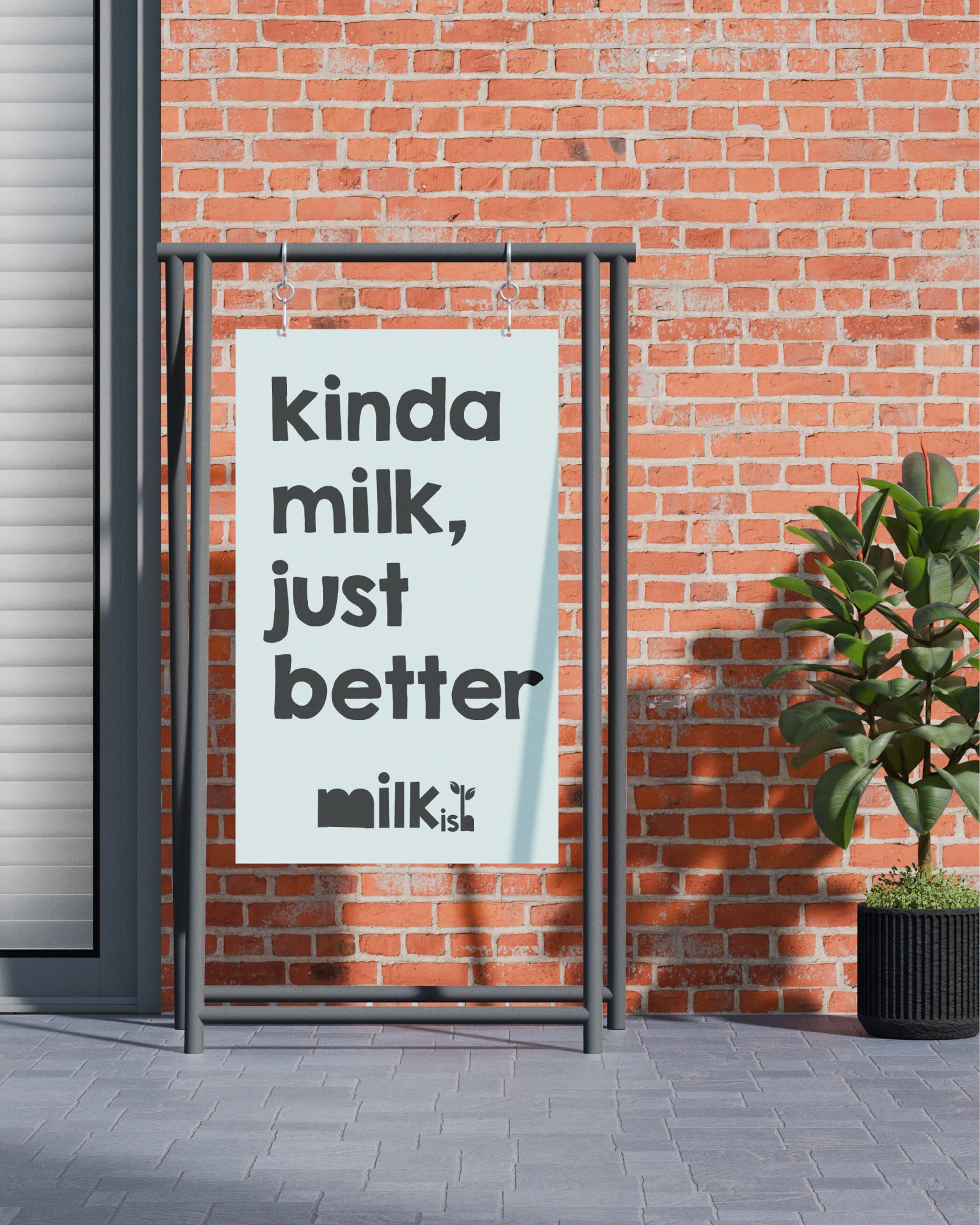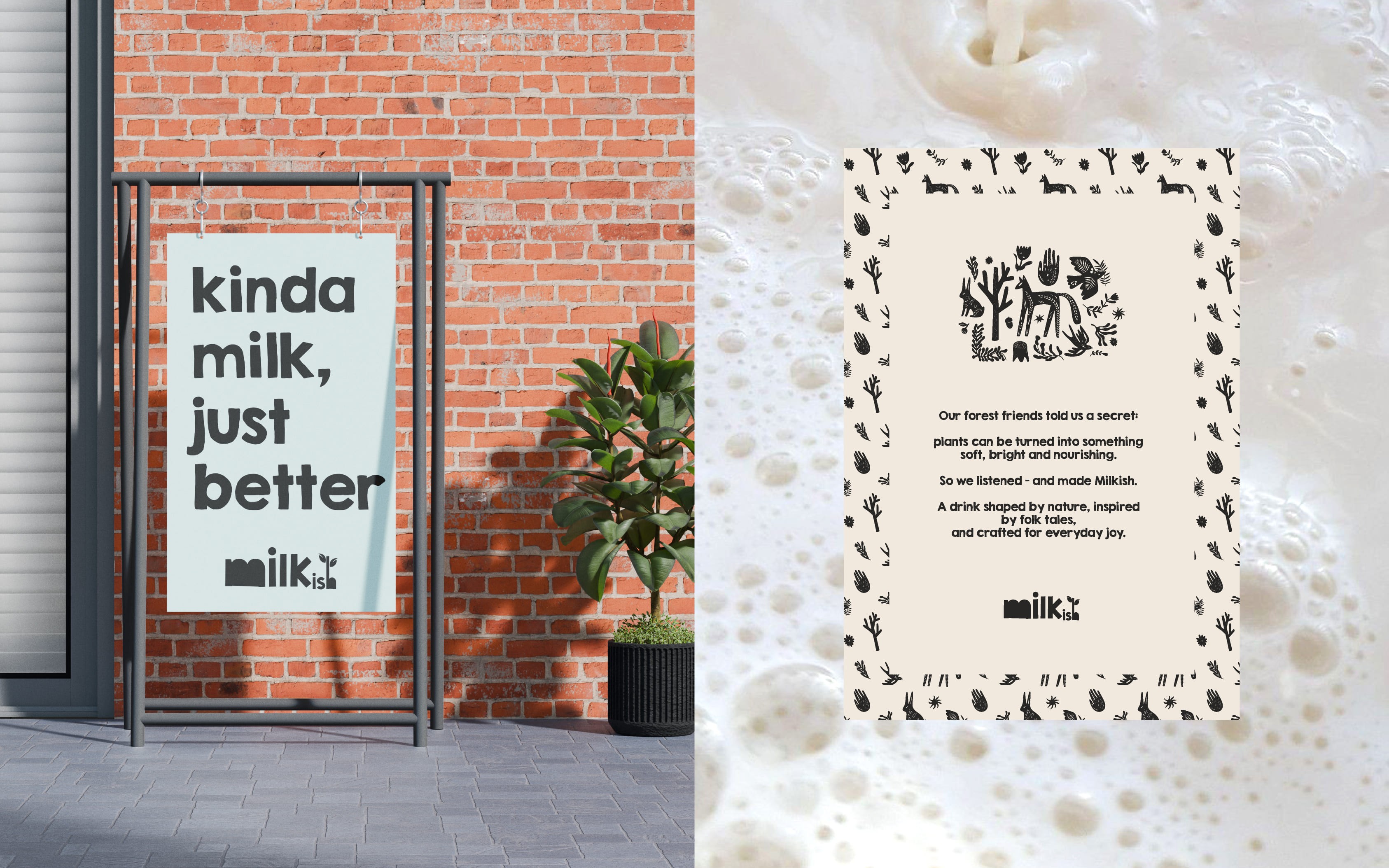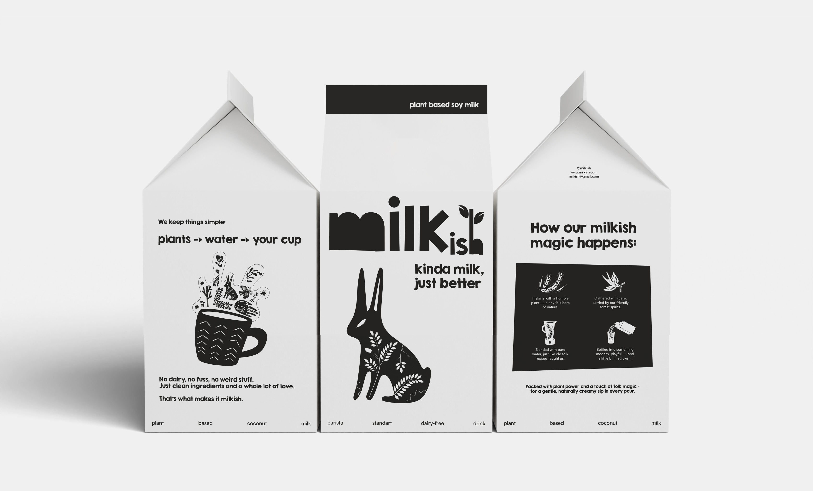 Milkish — a plant-based milk brand that is kinda like milk, just better. Crafted from simple ingredients and wrapped in a playful, friendly attitude. Easy to drink, easy to like — whether it’s oat, almond, coconut, or soy. A modern, lighthearted take on plant milk that doesn’t take itself too seriously.